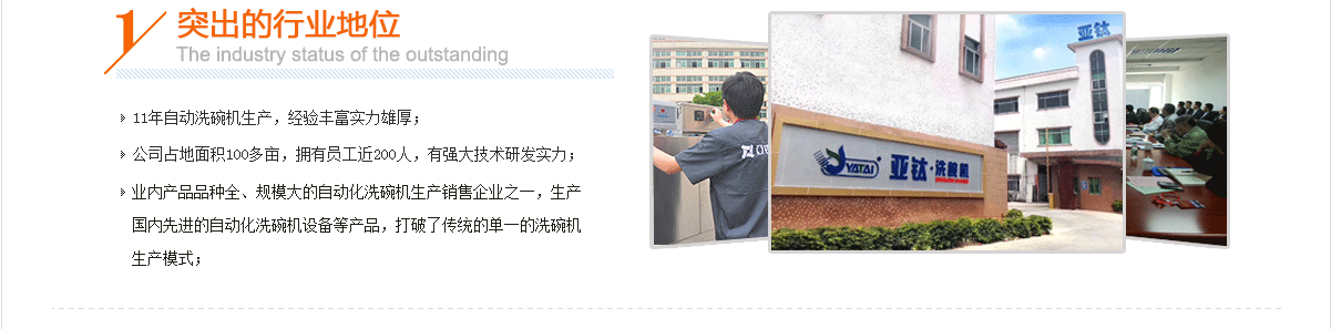 東莞市亞鈦?zhàn)詣?dòng)化科技有限公司位于珠三角經(jīng)濟(jì)中心地帶的東莞,享譽(yù)“世界工廠”之稱,東莞亞鈦?zhàn)詣?dòng)化科技有限公司是一家致力于商用洗碗機(jī)的研發(fā)、制造、項(xiàng)目投資運(yùn)營管理一體化的高新技術(shù)企業(yè)。本公司率先引進(jìn)歐盟、日本等多家國際先進(jìn)技術(shù)及專業(yè)制作人才,使產(chǎn)品在生產(chǎn)工藝、產(chǎn)品質(zhì)量、洗滌效果等方面達(dá)到較高水平,形成了以物理處理為核心的產(chǎn)業(yè)化、集成化餐具清洗、消毒處理、包裝技術(shù),立足成為“商用洗碗機(jī)一體化運(yùn)作名牌企業(yè)”。